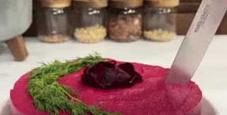 Салат "Оселедець під шубою" — багаторічний визнаний хіт будь-якого застілля. Салат зазнав безліч варіацій, і поєднання інгредієнтів із впізнаваним смаком використовується для приготування закусок, канапе і безлічі інших страв. Пропонуємо додати до скарбнички рецептів ще один варіант приготування "шуби" — у вигляді торта під буряковим мусом із блогу "Проста кулінарія".