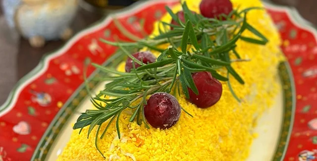 Святкові закуски та салати — найкраще частування на новорічному столі. Серед них особливою любов'ю користується "Мімоза" — яскравий і смачний салат із рибою, який можна оформити у вигляді рулету.