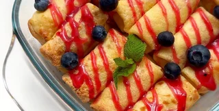 Під час подання на стіл млинці можна полити сиропом або згущеним молоком.
