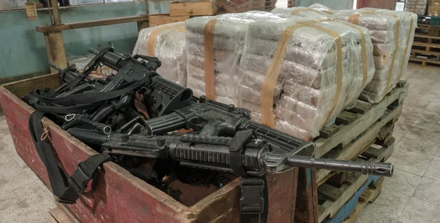 Колишній глава найманців Євген Пригожин тоді публікував відео зі зброєю. На кадрах можна побачити велику кількість ящиків усередині складського приміщення. Пригожин уточнив, що в них лежать нові пістолети-кулемети Томпсона, пістолети-кулемети Шпагіна і Судаєва, а також кулемети "Максим" із високою скорострільністю.