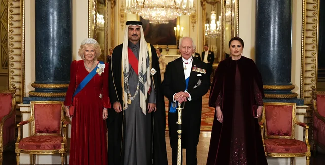 Король Чарльз III і королева Камілла влаштували у вівторок ввечері в Букінгемському палаці пишний державний банкет для еміра Катару і його королівської дружини шейхи Джавахер, повідомляє The Court Jeweller.