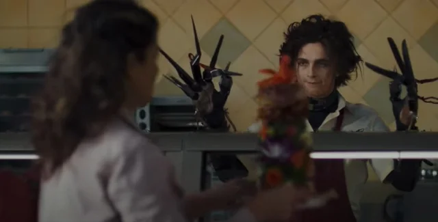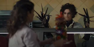 Разом з Тімоті в кадрі у ролі його матері з'являється Вайнона Райдер з оригінальної картини про талановитого перукаря з ножицями замість рук.