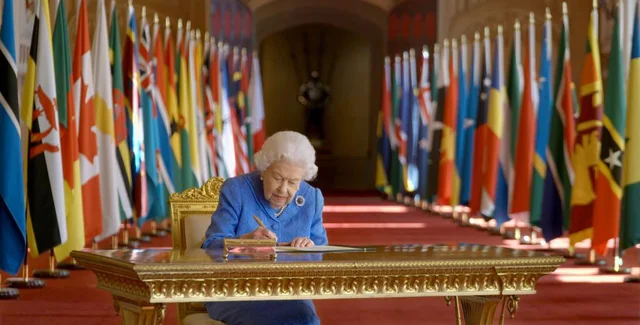 Під час церемонії, проведеної у Віндзорському замку, королева прийняла жезл свого колишнього королівського помічника та службові знаки.