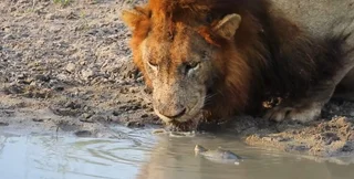 лев прийшов напитися після ситного обіду, але йому перешкодили | Фото: Скриншот видео