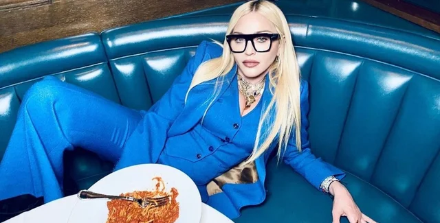 Мадонна позує за поїданням пасти в компанії своєї приятельки, а також сидячи за столом у гордій самоті.