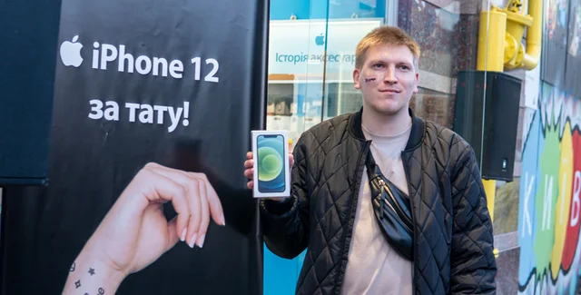 Сміливця звуть Вадим Породко. Чоловік зробив татуювання з логотипом київського магазину техніки на обличчі, а в обмін отримає новий смартфон iPhone 12 і довічний статус VIP-клієнта.