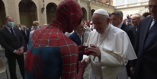 У повному костюмі супергероя Marvel, включаючи обтягуючий червоний комбінезон і маску, чоловік, якого, як зʼясувалося пізніше, звуть Маттіа Вільярдіта, і йому 27 років, тихо сидів поруч зі священиком і слухав проповідь Папи. Після служби він зміг особисто зустрітися з понтифіком.