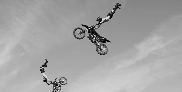 Навколо імпровізованого подіуму кілька людей на мотоциклах влаштували додаткове шоу з трюками | Фото: celine.com
