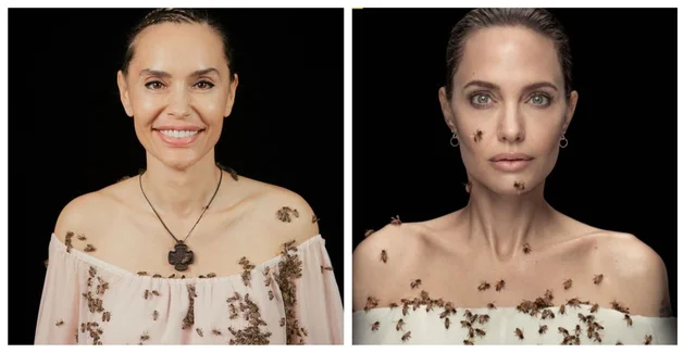 Як відомо, Анджеліна Джолі з'явилася в гучній фотосесії у травні, мужньо позуючи, поки бджоли повзали по її тілу і обличчю. Таким чином вона хотіла привернути увагу людства до проблеми вимирання бджіл.