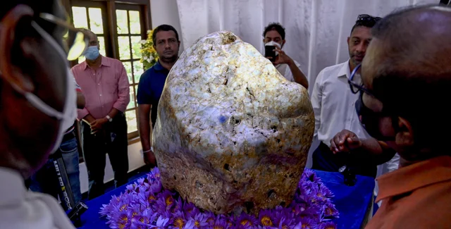 310-кілограмовий сапфір "Королева Азії", який уже назвали найбільшим в історії, виставили на огляд публіки в будинку одного з власників кар'єру в Хорані, розташованому за 65 кілометрів на південь від столиці Шрі-Ланки Коломбо, пише Reuters.