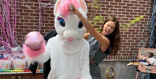 На знімках Ірина позує в компанії аніматора в костюмі єдинорога. На ній – елегантний костюм, що складається з топу без рукавів і довгої спідниці, а також чорні чоботи. Вона тримає єдинорога за ріг і сміється на камеру. На одному з фото видно, що автором знімка став голлівудський актор і режисер Бредлі Купер, батько Леї, відображення якого помітне в дзеркалі. Судячи з його виразу обличчя, він був у чудовому настрої.