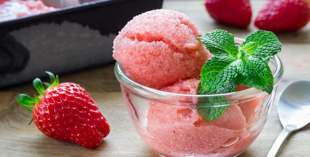 Сорбет часто подають у ресторанах — це обов'язковий пункт у літньому меню. Але його легко можна приготувати вдома, що, безсумнівно, куди дешевше. Зараз, коли на прилавках уже з'явилася полуниця, Фокус пропонує рецепт простого та смачного полуничного сорбету.
