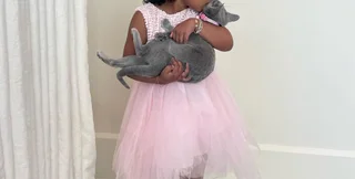 Чотирирічна дочка американської моделі Хлої Кардаш'ян та її колишнього коханого, 31-річного Трістана Томпсона, обіймається зі своїм сірим котом на чарівних фото, якими знаменитість поділилася у себе в Instagram, де має 219 млн підписників. На знімках маленька Тру Томпсон солодко баюкає свого улюбленця. Рожевий нашийник кота гармонійно поєднується з ніжно-рожевою сукнею дівчинки.