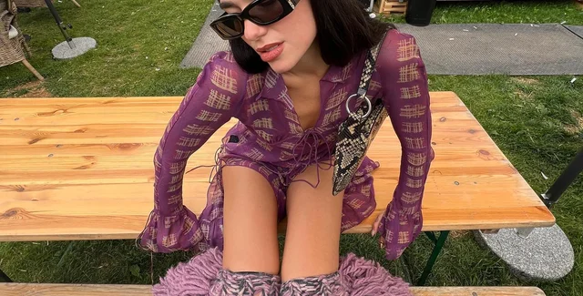 Артистка косовського походження відвідала фестиваль у фіолетово-чорному луці, який підійде як літа, так і для зими. На Дуа Ліпі була напівпрозора сукня з численними розрізами, через яку було видно чорну спідню білизну та яку знаменитість доповнила в'язаними об'ємними гетрами. Як аксесуари до літньо-зимового образу зірка додала чорну шапку, сонцезахисні окуляри та сумку у зміїному принті.