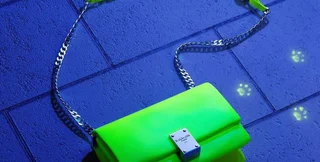 "Запустіть кігтики в м'яку сумку 1945 року. Нова версія класики з оксамитовою шкірою неонових тонів і деталями у вигляді ланцюжків залишається вірною кодам Будинку", — закликають у Модному домі.