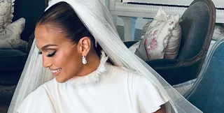 Головна сукня, та сама, в якій Дженніфер Лопес йшла до вівтаря, доповнена довгим шлейфом і воланами.
