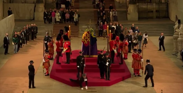 Чоловік звалився з платформи, на якій стоїть труна з тілом королеви.