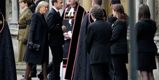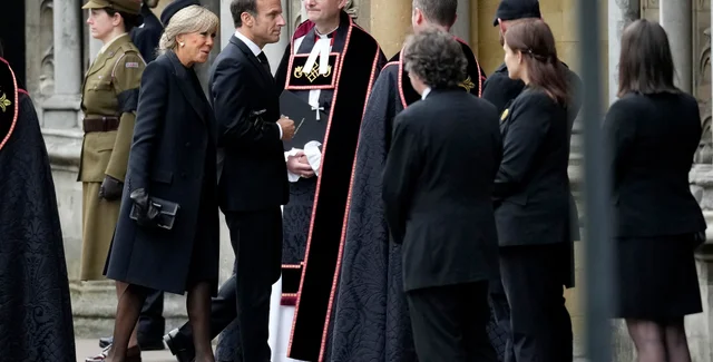 44-й президент Франції Емманюель Макрон разом зі своєю 69-річною дружиною Бріжит приїхали до Вестмінстерського абатства, де зібралося понад 2000 гостей з-поміж глав держав, дипломатів, членів королівських сімей, для прощання з Єлизаветою II. На вході до собору Бріжит широко посміхалася, попри те, що захід траурний.