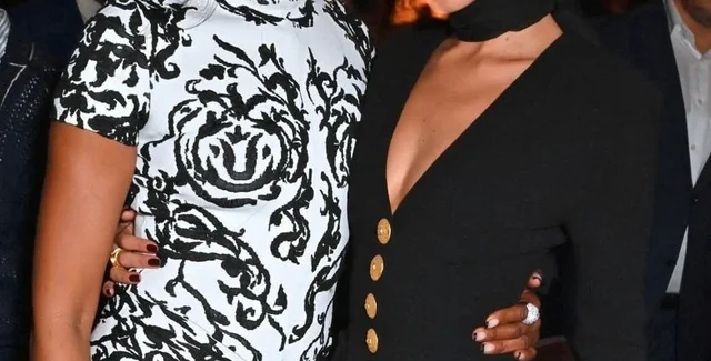 52-річна Наомі була одягнена у шикарну чорно-білу сукню та штани з високою горловиною та короткими рукавами, а також зав'язками на талії. Вона поєднала образ із приголомшливими чорними прикрашеними туфлями та макіяжем, врахочуючи темно-червону помаду.