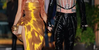 Її наречений Колсон Бейкер, відомий під псевдонімом Machine Gun Kelly, підтримав театральність своєї коханої, з'явившись у чорному готичному вбранні.