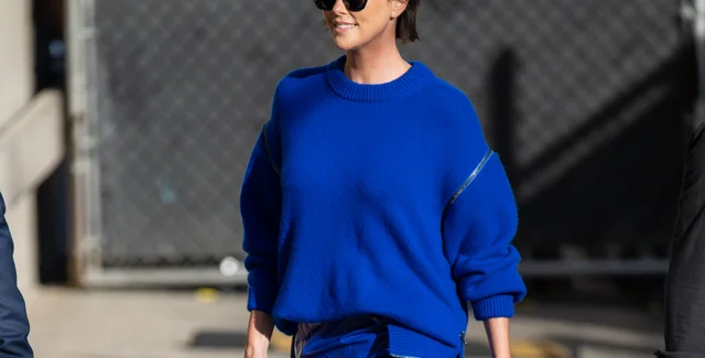 У синьому пуловері та вініловій спідниці: ефектна Шарліз Терон відвідала шоу