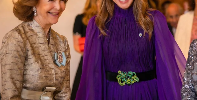 До Йорданії з офіційним візитом прибули король та королева Швеції. І король Абдалла II, як привітний господар, влаштував для гостей розкішний прийом у палаці Аль-Хусейнія. Його дружина, королева Ранія, з'явилася на вечорі у розкішній фіолетовій сукні оригінального фасону. Про це пише Daily Mail.
