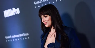Актриса одягла вбрання кольору індиго, що складається з корсетного топу, який оголює пупок, широких штанів з високою талією та структурованого двобортного пальта. Насамкінець Джонсон обрала кольє з діамантовим ланцюжком від Jessica McCormack і пару чорних туфель-човників.
