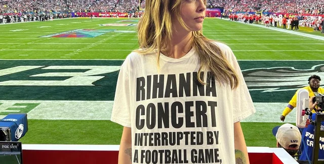 Вона одягла футболку з портретом Ріанни та написом: "Якийсь футбольний матч перериває концерт Ріанни, бісить, але що поробиш".