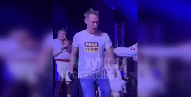 Російський актор Панін вийшов на сцену у футболці з антиросійським написом і похвалив Данилка за те, що артист виступає попри зрив голосу.