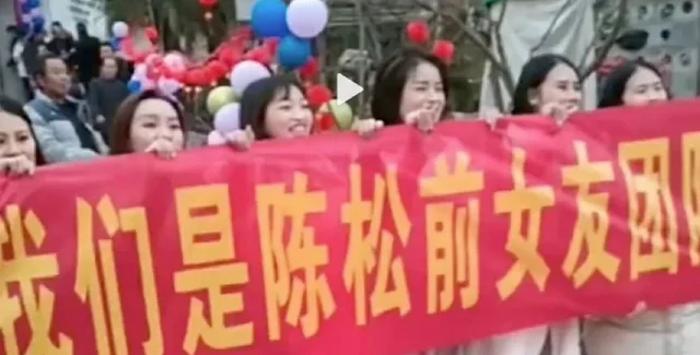 Дізнавшись про те, що колишній одружується, кинуті ним жінки з'явилися до нього на весілля, тримаючи в руках червоний банер, на якому було написано: "Ми команда колишніх подружок Чена, сьогодні ми вас знищимо".
