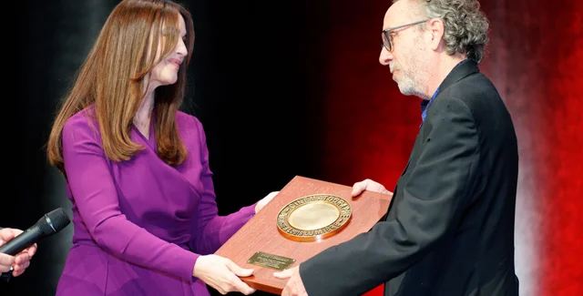 Тім Бертон отримує нагороду з рук Моніки Белуччі | Фото: Getty