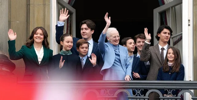 Брати Йоахім та Фредерік з'явилися на балконі зі своїми дітьми. Королева Маргрете, яка перенесла операцію на спині минулого місяця, посміхалася, махаючи натовпу з балкона палацу Амалієнборг у Копенгагені.