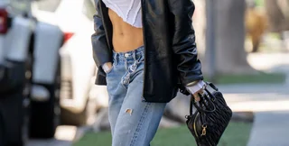 Прямуючи на побачення, зірка продемонструвала своє засмагле та підтягнуте тіло в пікантному монохромному образі. Вона була без бюстгальтера в чорному плащі з бахромою на рукавах і білим коміром у поєднанні з джинсовими шортами від Christian Cowan.