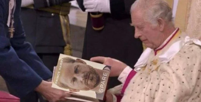 Звісно, однією з головним тем для жартів стала персона скандального принца Гаррі та його мемуари "Запасний". У мережі жартують, що саме їх вручили Чарльзу ІІІ під час коронації у Вестмінстерському абатстві.