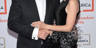 Його дружина, інструктор з йоги, вибрала для світського заходу чорну сукню з багаторівневою бахромою з пір'я. Своє волосся Хіларія зібрала в акуратний пучок, а образ доповнила сережками, золотим браслетом та кількома каблучками.