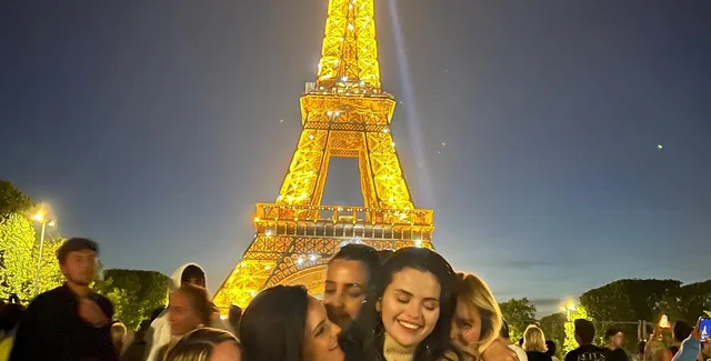 Селена Гомес позувала з друзями перед Ейфелевою вежею під час нічної прогулянки в Парижі.