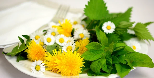 Квіти кульбаби. Квіти мають антиоксидантні властивості й можуть зміцнити вашу імунну систему. Ви знали, що можна посмажити квіти в клярі та зробити оладки з квітів кульбаби?