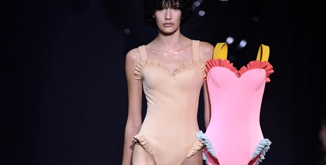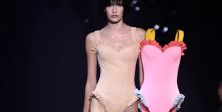 Не обійшлося і без оптичних ілюзій, притаманних голландському бренду. Одна з моделей продемонструвала ніжно-рожевий суцільний купальник, який наче в повітрі повис біля неї в той час, коли сама модель одягнута в бежеве боді.