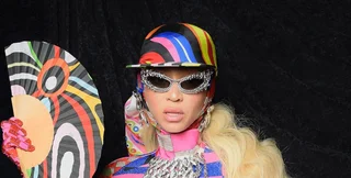 Напередодні у Лос-Анджелесі знаменитість виступила в кастомному образі від італійського бренду Pucci. Приталений комбінезон включав у себе низку яскравих кольорів та стрази. До нього Бейонсе додала кольорове віяло, кепку та окуляри з камінням.