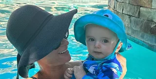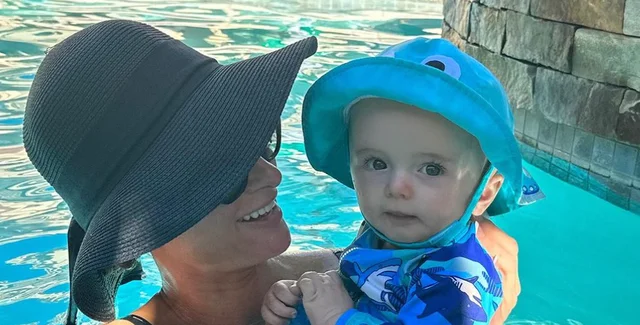 Дружина Картера Реума показала, як проводила час із малюком у басейні. Періс була одягнута в чорний суцільний купальник, капелюх із широкими крисами та сонцезахисні окуляри. Тим часом Фенікс приміряв блакитний костюмчик та капелюшка.