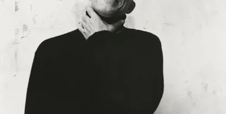 На чорно-білих фото актор позував без сорочки і в пальто.