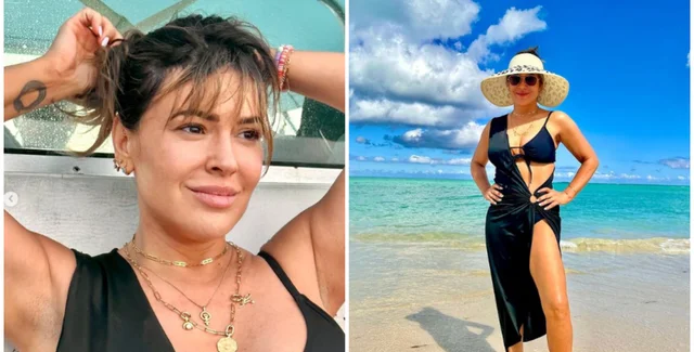 50-річна Алісса Мілано без грама косметики попозувала на пляжі в чорному купальнику