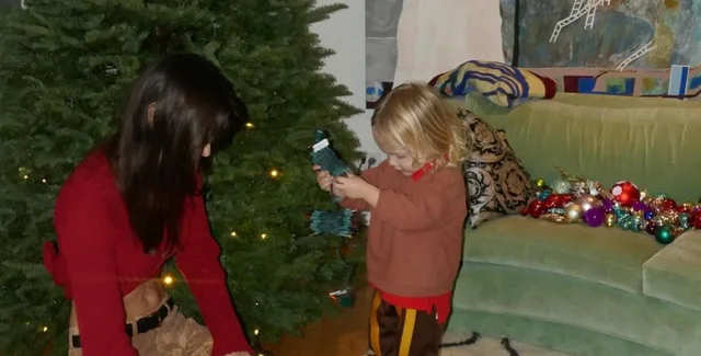 Дворічний Сильвестр допомагав мамі прикрашати ялинку до свят.
