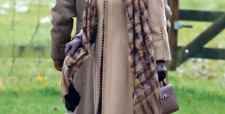 Його дружина Камілла була у світло-коричневому пальті, шарфі та капелюсі з хутряною підкладкою. Образ вона доповнила теплою спідницею і чорними замшевими чобітьми, а в руках тримала складену прозору парасольку і невелику коричневу сумку.