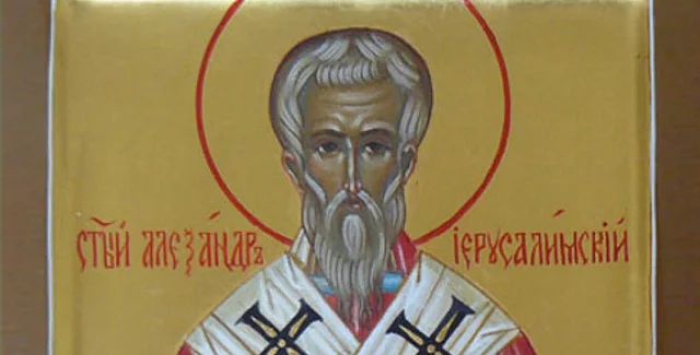 Сьогодні православна церква вшановує пам'ять священномученика Олександра Єрусалимського. Він жив у II столітті, був пастором і учнем Климента Олександрійського. Одного разу в Єрусалимі Олександр поклонився святим місцям, після чого почав чути одкровення Господа. Тоді він зрозумів, що йому судилося стати помічником патріарха Наркіса. Після смерті патріарха Олександр очолив церкву. Коли імператором став Декій, святого кинули до в'язниці через його віру, де він і помер.