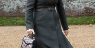 На службу в церкві Святої Марії Магдалини Зара одягла смарагдове пальто від Лори Грін із великим коміром і поясом, що підкреслює талію. Образ вона доповнила чорними замшевими чобітьми до коліна від Stuart Weitzman, мідісумкою Aspinal of London Mayfair, яку вона носить постійно, і золотим обідком із бантом від Juliette Millinery.
