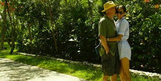 На знімку вона цілує чоловіка в щоку, а на другому він притулився до її щоки. Знімки пари були зроблені під час їхнього відпочинку в тропіках.