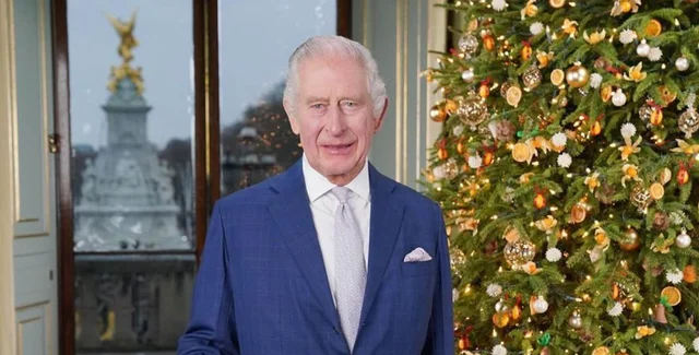 На відміну від листівки подяки, різдвяна листівка містить у собі кадр із дня коронації Чарльза і Камілли. Фото, зроблене Г'юго Бернандом у тронній залі Букінгемського палацу, зображує монарха і його дружину в повних церемоніальних регаліях і мантіях.