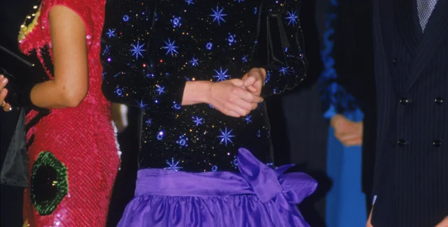 Кетрін Вокер створила чорну оксамитову сукню для Діани, але вона ніколи не з'являлася в ній на публіці. Сукню з оздобленням на вирізі і по подолу Діана носила на приватному прийомі 1985 року.