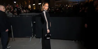 Для появи в першому ряду на весняному показі високої моди Valentino 2024 (під назвою Valentino Le Salon) у Парижі Джей Ло продемонструвала стиль 60-х років. Вона зʼявилася в довгій чорній сукні з акцентними рукавами. У руках знаменитість тримала сумку в тон основного вбрання.